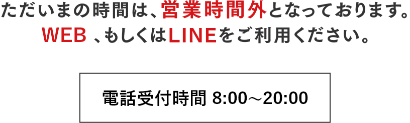 - AAM8時からPM8時となります。夜間のお問い合わせは翌営業日にご連絡させていただきます。